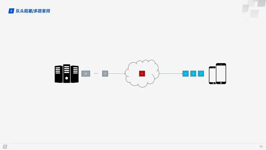1.5 队头阻塞/多路复用 HTTP/1.1 和 HTTP/2 都存在队头阻塞问题(Head of line blocking),那什么是队头阻塞呢? TCP 是个面向连接的协议,即发送请求后需要收到 ACK 消息,以确认对方已接收到数据。如果每次请求都要在收到上次请求的 ACK 消息后再请求,那么效率无疑很低。后来 HTTP/1.1 提出了 Pipelining 技术,允许一个 TCP 连接同时发送多个请求,这样就大大提升了传输效率。
