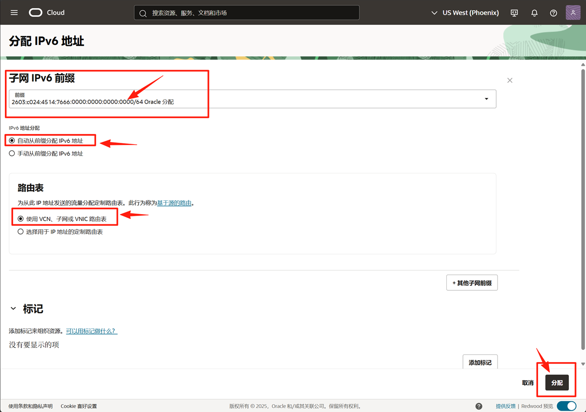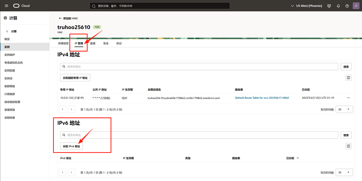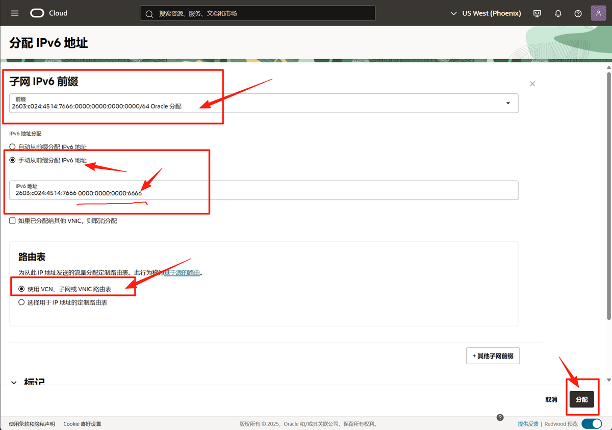 现在进行关键一步:为实例的网络接口 (VNIC) 分配具体的 IPv6 地址。